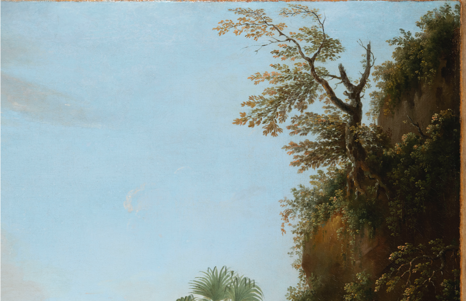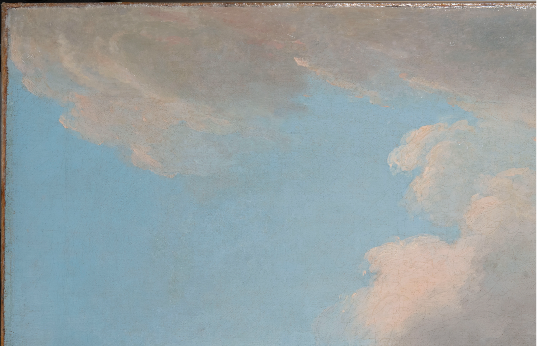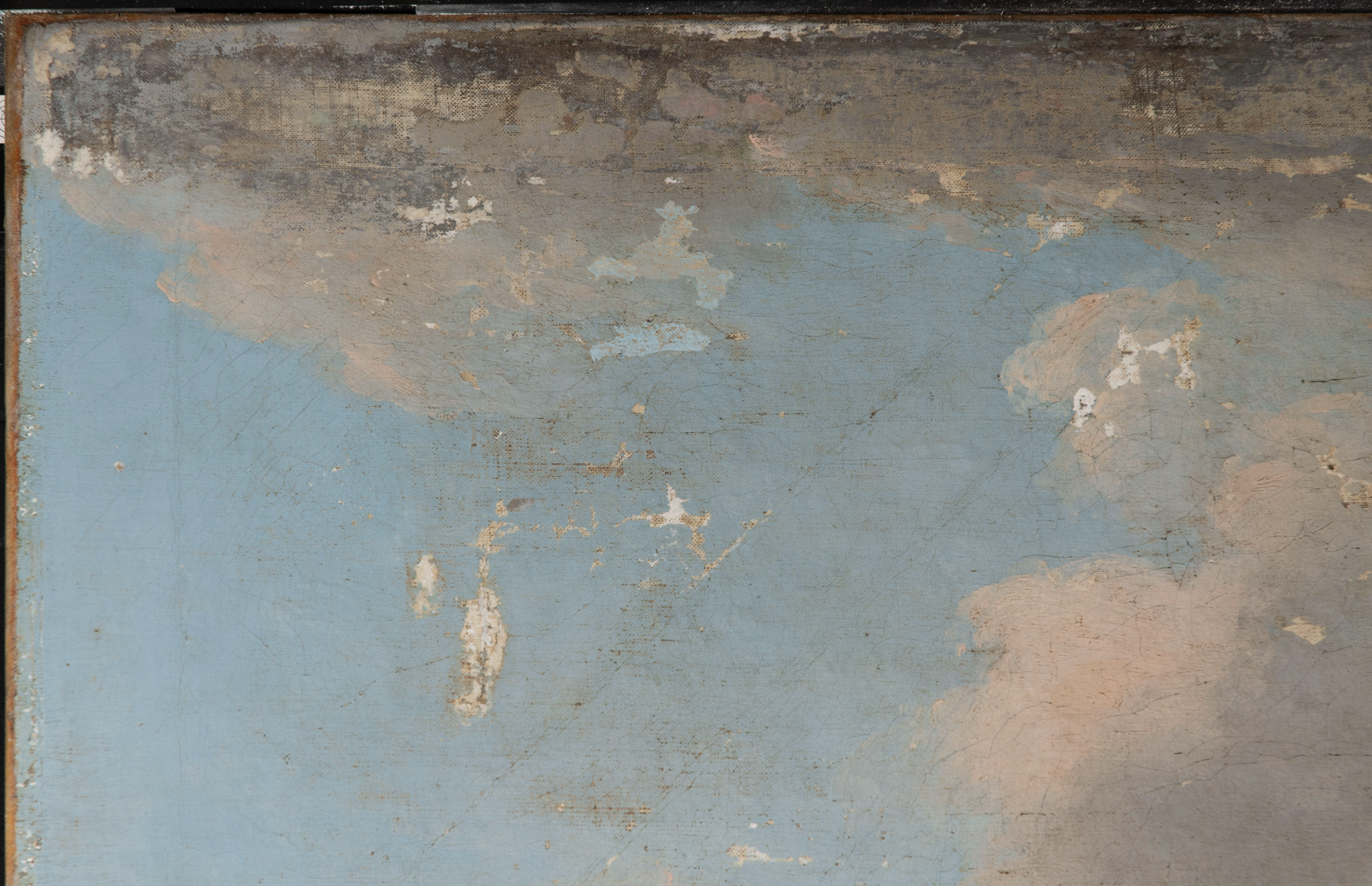 The painting presented a substantial amount of losses concentrated around the border region and tacking margins. Most of these were complete losses exposing the bare canvas, requiring a tailored approach to level these areas with the surrounding paint film without obscuring original material. For larger losses, proper structural modelling of the fills was essential; otherwise, they would appear too flat and distract from the overall image.